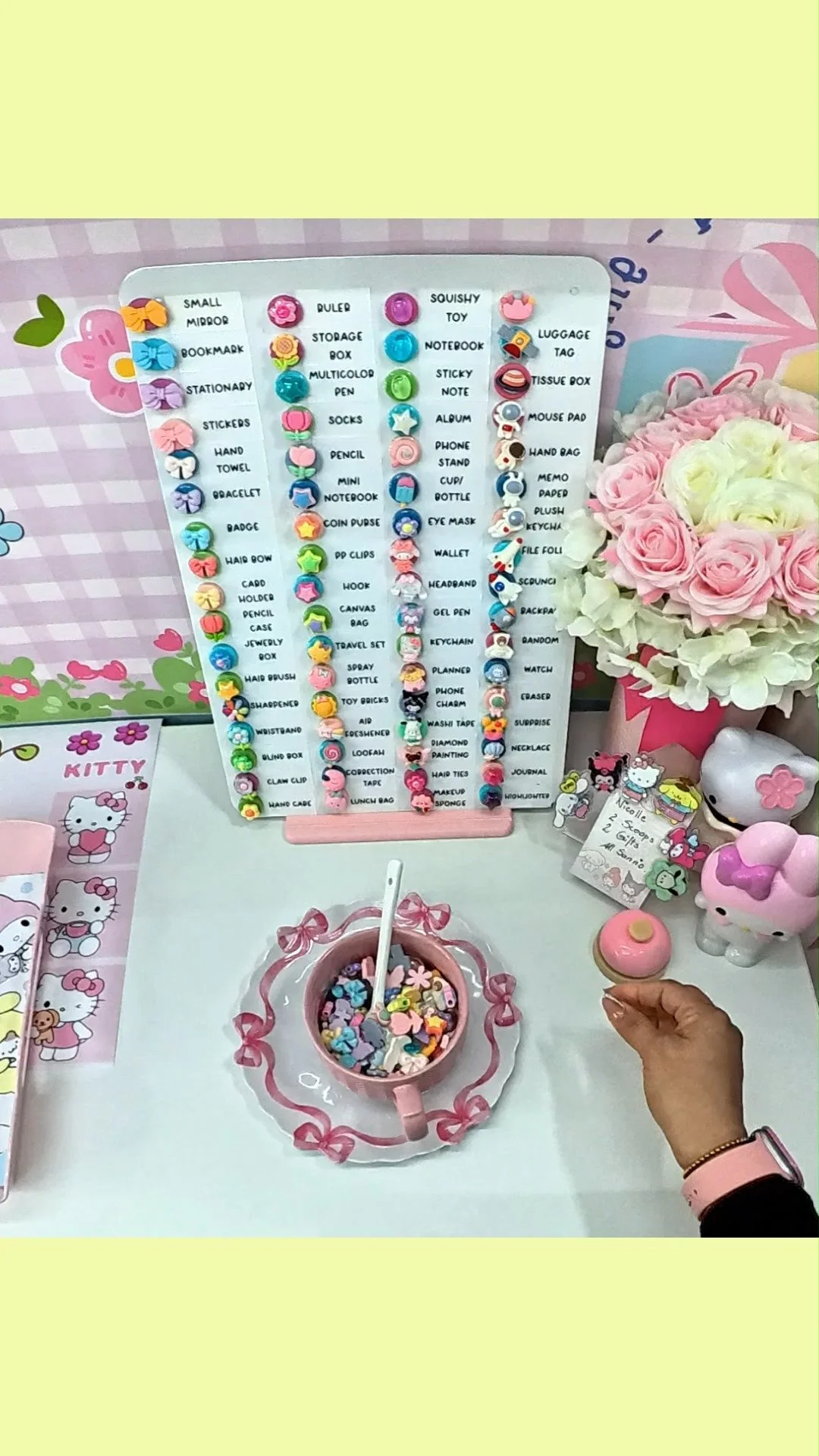 cute stationery, plushies, headbands, mini bags, planners, phone stands, stickers, washi tape, notebooks, pens, and more — all with that adorable Sanrio-style vibe we love 💖